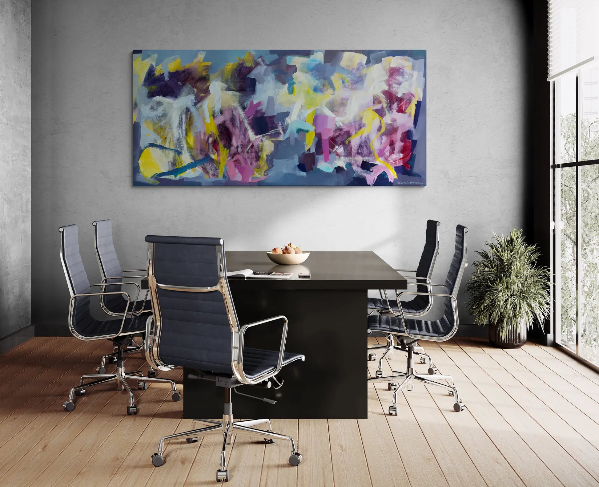 Links of Memory is a work that demands presence. With its monumental dimensions, it is ideal for collectors and interior designers seeking large-format contemporary art capable of transforming a space and endowing it with unique character. Its chromatic intensity and gestural energy make it a perfect piece for those who wish to live surrounded by art that vibrates, moves, and connects.
