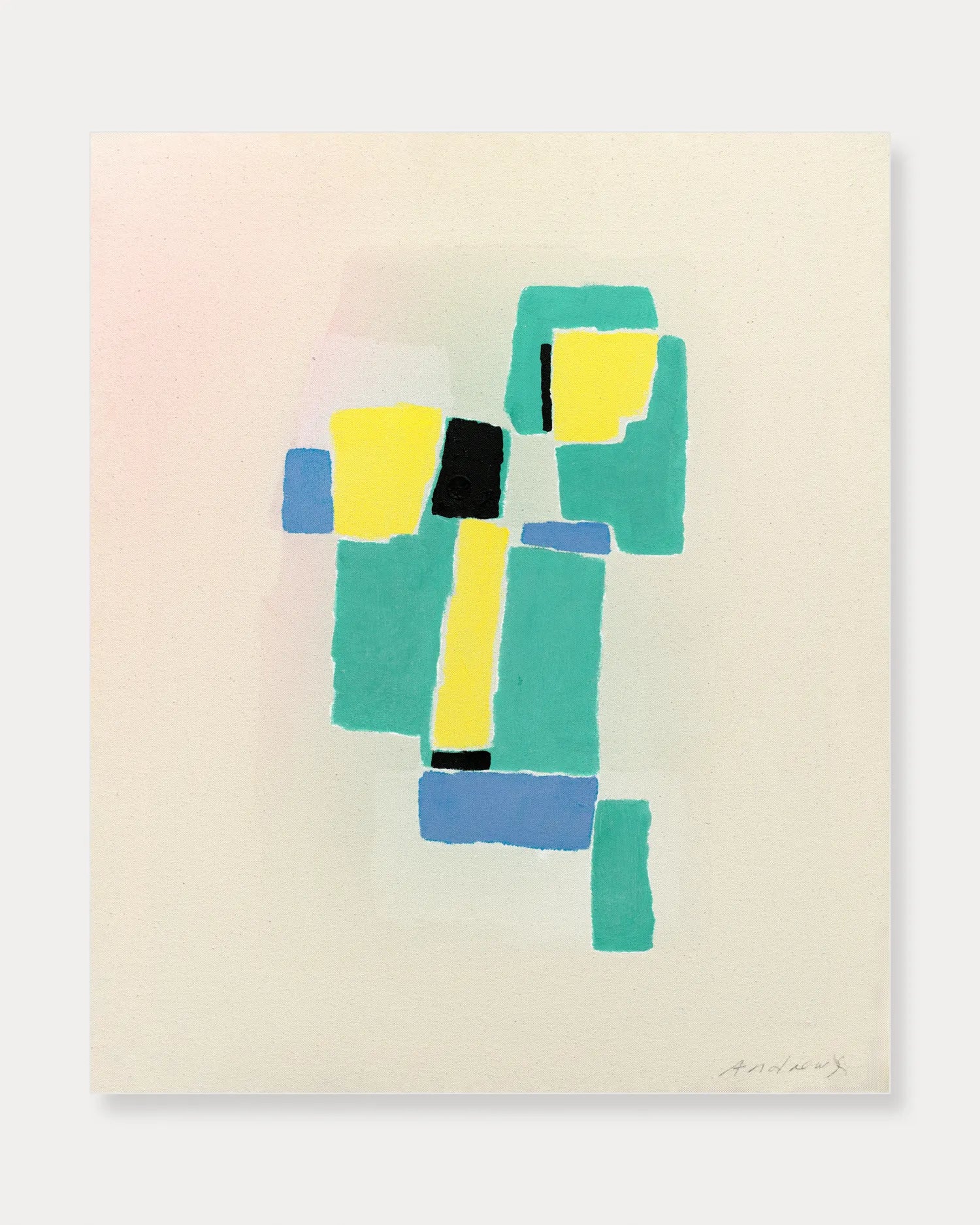 From a curatorial perspective, Modules anticipates the conceptual foundations of Andrews’ later Painting Blocks (2019) series, where she played with the idea of “Building Blocks” to explore urban formations from above. Here, Andrews focuses on color fields, geometric reduction, and compositional equilibrium, distilling form to its essential structures. The result is a work that is abstract, minimalist, and refined, where clarity and balance define the visual rhythm.