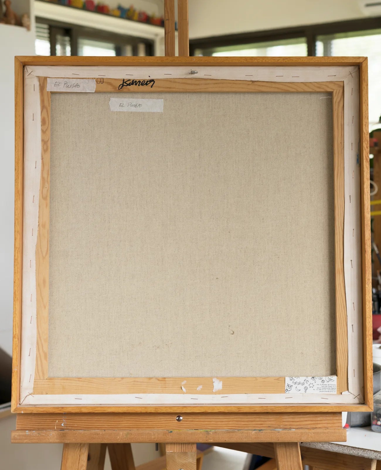 At the top of the hill, an idealized castle acts as the focal point of this imaginary setting, emphasizing the artist’s affinity for playful, narrative, and dreamlike atmospheres. In a style that is difficult to classify, the work combines fantasy, contemporary illustration, and color to create a serene environment filled with charm. The artwork measures 60 × 60 × 2 cm (23.6 × 23.6 × 0.8 in), and with the frame 62.5 × 62.5 × 5 cm (24.6 × 24.6 × 2 in).
